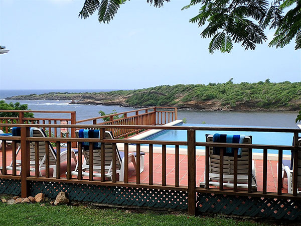 The One Bedroom Ocean View Apartment can be combined with either of the self-contained studios to make accommodation for parties of 3 - 6 persons at special group rates. The Studios even when linked with the Ocean View Apartment, provide private space as well with their own 20 feet long shaded verandas. Cabier Beach Studio links internally with the Ocean View Apartment. | |
