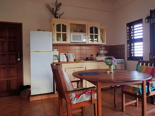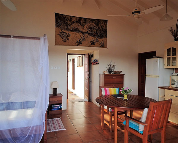 The Apartment and Studios include - Private verandas with panoramic sea and beach views - Ceiling fans and side fans in bedrooms - Air-conditioning in bedrooms ($5 per day) - Four poster beds with mosquito nets - Hairdryers - All bathrooms have showers - Daily cleaning (towel & linen change every 3 days) - Beach towels - Safe - Fully equipped kitchens with microwave, large fridge/freezer, oven, toaster kettle and coffee maker - Welcome pack of tea and coffee |