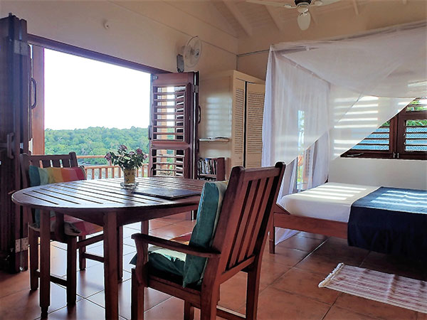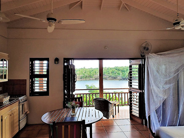 Crochu Bay Studio and Cabier Beach Studio are self-contained and each feature a 20ft long private veranda with swing seats, dining table, kitchen, en-suite bathroom with shower.